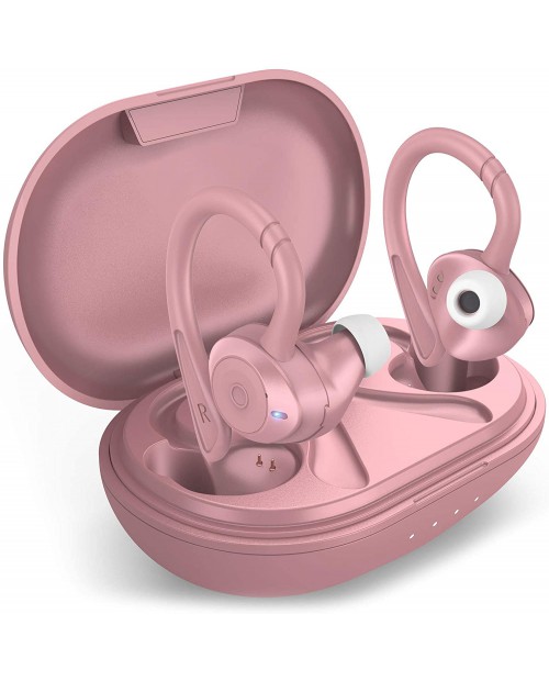 COMISO Wireless Earbuds, True Wireless in Ear Bluetooth 5.0 with Microphone, Deep Bass, IPX7 Waterproof Loud Voice Sport Earphones with Charging Case for Outdoor Running Gym Workout (Rose Pink)