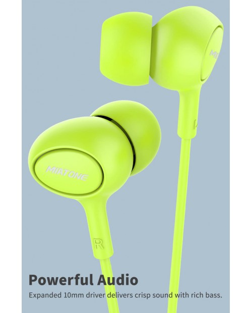 Earbuds, MIATONE Wired in- Ear Earbuds with Microphone, Dynamic Crystal Clear Sound Ergonomic Ear Buds Earphones Headphones for Android, BlackBerry - Green