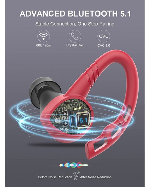 Wireless Earbud, Sport Bluetooth 5.1 Headphones Wireless Earphones in Ear Noise Cancelling Bluetooth Earbud with Mic, IP7 Waterproof 48H Deep Bass Sports Earhooks for Running Workout Gym[2021 New]